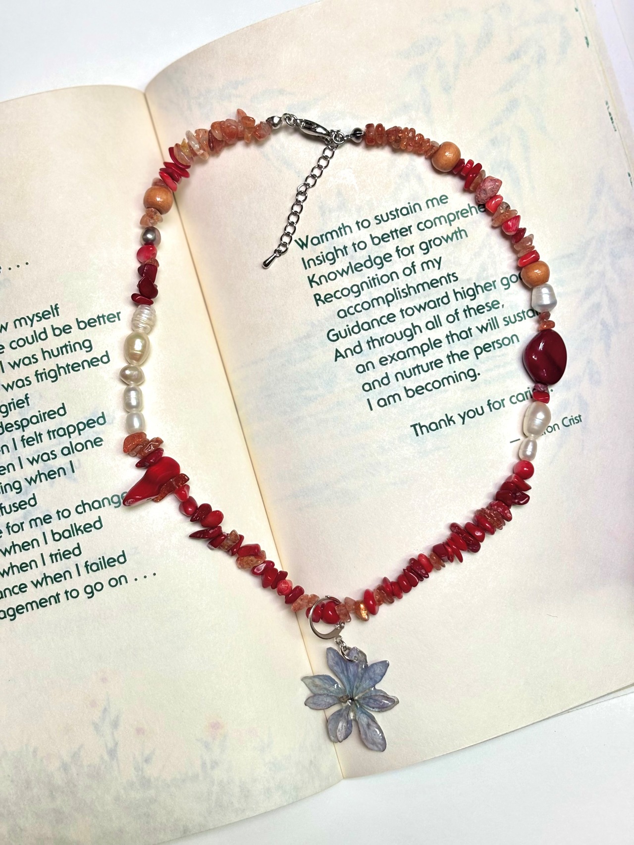 紫陽花を使用し天然石はカーネリアン、シトリン